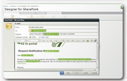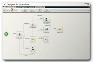 K2其獨立的設(shè)計器能夠讓用戶無需編寫代碼即可建立SharePoint工作流程應(yīng)用程序,也可以建立非基于SharePoint的工作流程應(yīng)用程序。